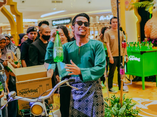 In ‘Raya Lebih Bermakna – Mana Adam?’, the film showcases the story of Adam, a seemingly aloof teenager who mysteriously disappears during Raya, much to his mother’s annoyance. During the launch, we recreated the scene where Adam (played by Naim Daniel) rode his bicycle onto the main stage, poured Spritzer Sparkling into the recipes to add the finishing touch, and unveiled the campaign tagline by pulling up a traditional Malay wooden blind.